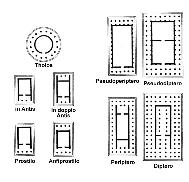 Seconda cosa. Io non ho presente nemmeno un tempio classico che abbia sulla facciata un numero dispari di colonne. Certamente non nella classica tassonomia tramandataci dal De Architectura di Vitruvio.