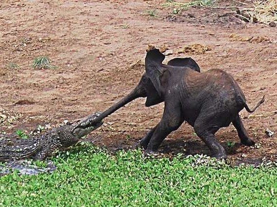 http://www.67notout.com/2011/01/elephants-trunk-and-crocodile.html: a scene caught on camera by photographer Johan Opperman in the Kruger National Park